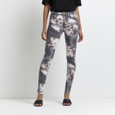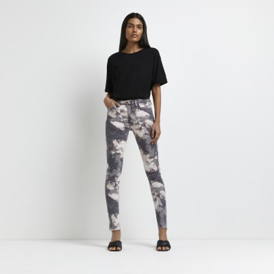 Grey Tie Dye Mid Rise Skinny Jeans River Island